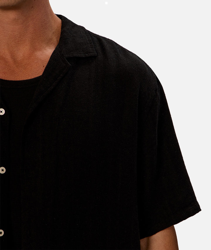 The Catanza Stripe Short Sleeve Linen Shirt - Black